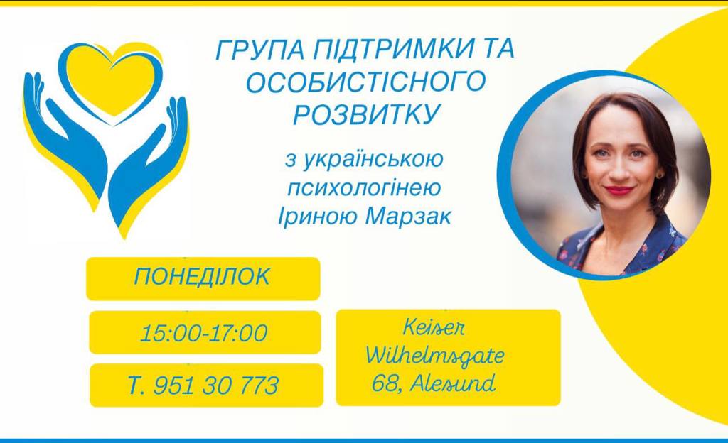 Mitt navn er Iryna Marzak, psykolog med over 20 års erfaring, psykoterapeut, forfatter av treningsprogrammer og coach. Fra januar 2024 starter jeg opp støttegrupper og personlig utviklingsgrupper spesielt for ukrainere. Dette initiativet er en del av vår innsats for å skape et trygt og støttende miljø for de som trenger å ta vare på sin mentale helse midt i livets utfordringer.
