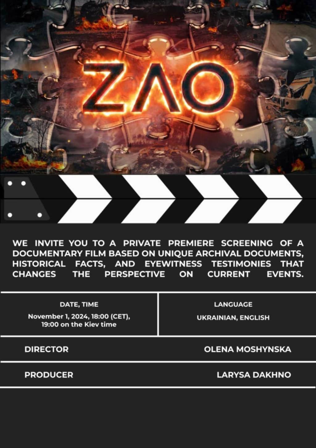 Filmen, regissert av Olena Moshynska og Larysa Dakhno, har gjennom støtte fra internasjonale organisasjoner nådd et bredt publikum og vist verden de alvorlige utfordringene Ukraina står overfor. Den nesten to timer lange dokumentaren gir et direkte innblikk i krigen, og viser hvilken fare Russland utgjør, ikke bare for Ukraina, men også for Europa og verden.