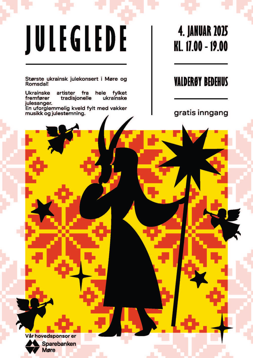 Konserten er gratis for alle besøkende og byr på en atmosfære av kultur, tradisjon og fellesskap. Her kan både ukrainere og nordmenn oppleve den dype betydningen av ukrainske juletradisjoner og samtidig støtte Ukraina i disse vanskelige tidene. Vi er også glade for å ha støtte fra Sparebanken Møre som gjør denne kvelden mulig.