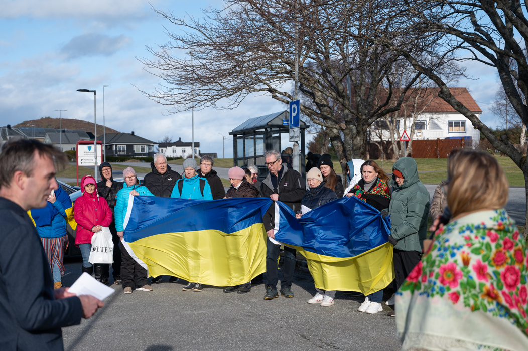 Ordfører Kenneth Langvatn uttrykte tydelig støtte til Ukraina: «I disse kampene på ukrainsk jord står ukrainere alene. Derfor er det viktig at den norske og europeiske støtten fortsetter. Både økonomisk, politisk og humanitært, så lenge det er nødvendig.»