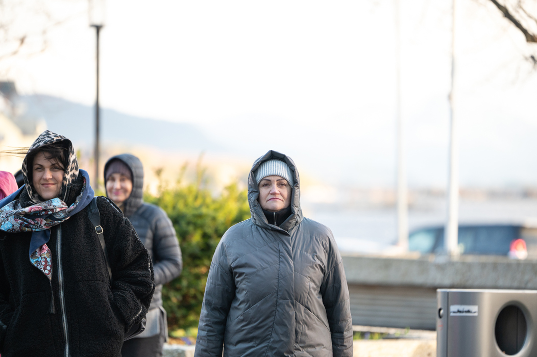 Fellesskap og samhold Etter den offisielle delen samlet deltakerne seg på Frivilligsentralen for å drøfte videre samarbeid og støtte. Te og kaffe ble servert, og samtalene handlet om hvordan ukrainske flyktninger og deres støttespillere kan jobbe videre for å holde Ukraina på den internasjonale dagsordenen.