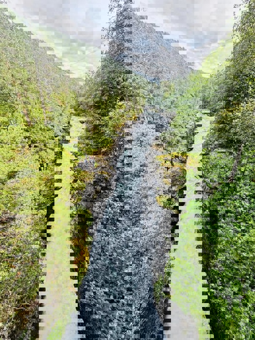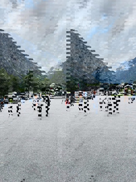 Men etter under 30 minutter lettet tåken helt, og avslørte den spektakulære serpentinveien som slynger seg oppover fjellsiden, og det dramatiske landskapet rundt. Vi besøkte også Trollveggen, hvor det sto en liten vogn utstilt – en kopi av vognen som historisk ble brukt til å frakte norsk gull til Storbritannia under naziokkuperingen. Dette viktige historiske minnet ble fremhevet av arrangøren, som også nevnte den norske filmen fra 2022, “Gulltransporten”, som forteller historien om denne modige operasjonen.
